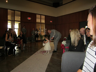 My friend Amanda aka Bratt asked Katelyn to be a flower girl in her wedding. I told Bratt that I could not promise that she would actually walked down the aisle, since she is on the shy side. Katelyn definitely proved me wrong! She and another little girl Olivia, did a wonderful job. I think they were the hit of the wedding, besides the bride, Amanda!